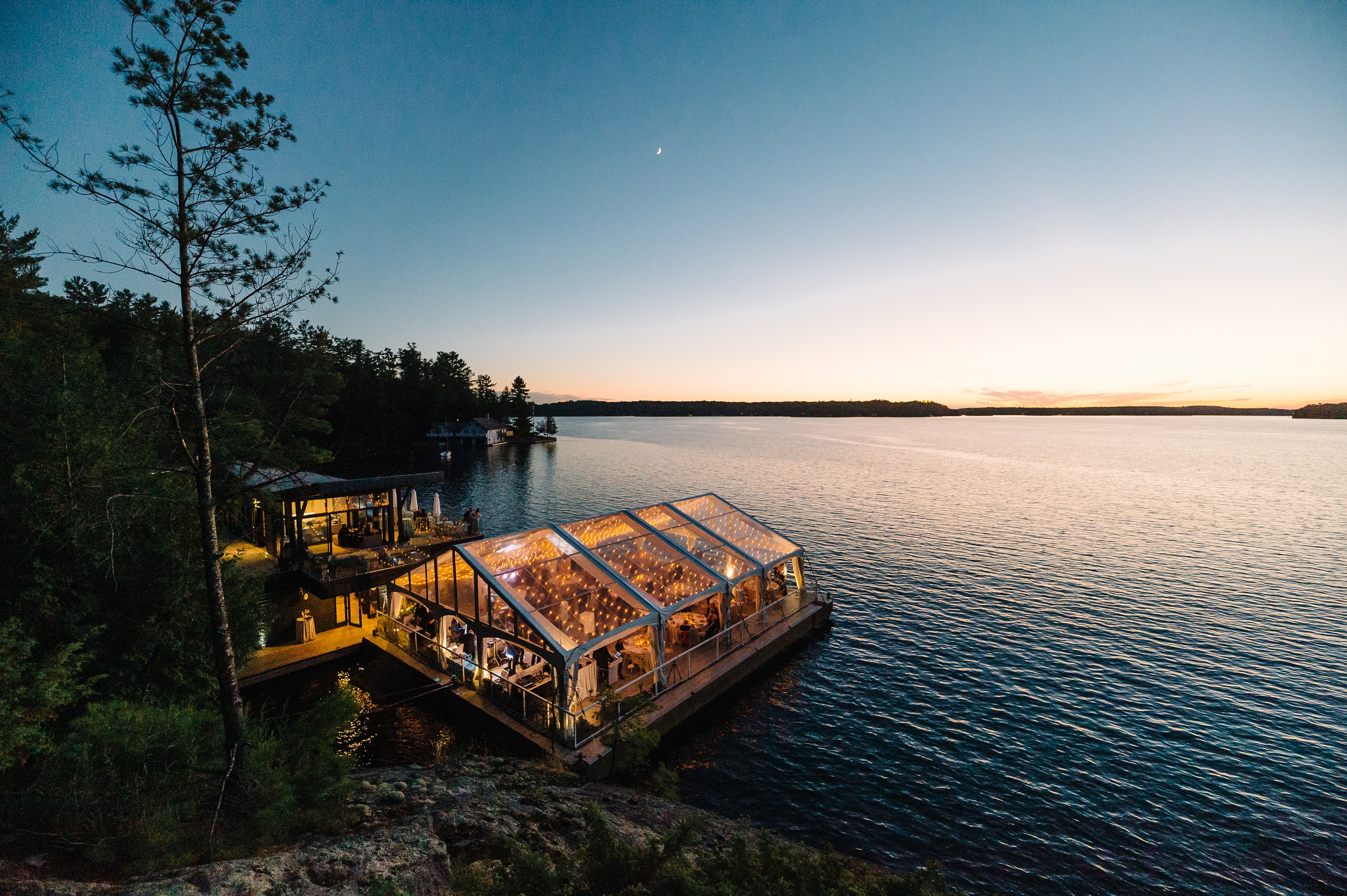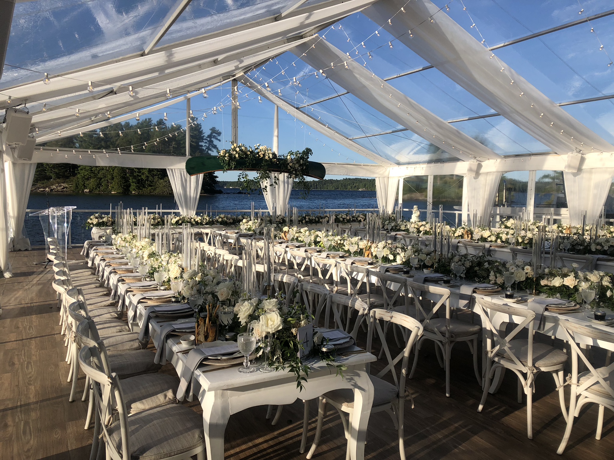 Waterfront weddings are beautiful—but a wedding built on the lake is extraordinary. Our barge wedding installations redefine what’s possible, creating floating venues that feel as polished and intentional as any luxury ballroom. With subfloors, clear-span structures, and custom accessories, we bring elevated elegance to the water, giving couples an unforgettable setting that quite literally rises above the ordinary.
