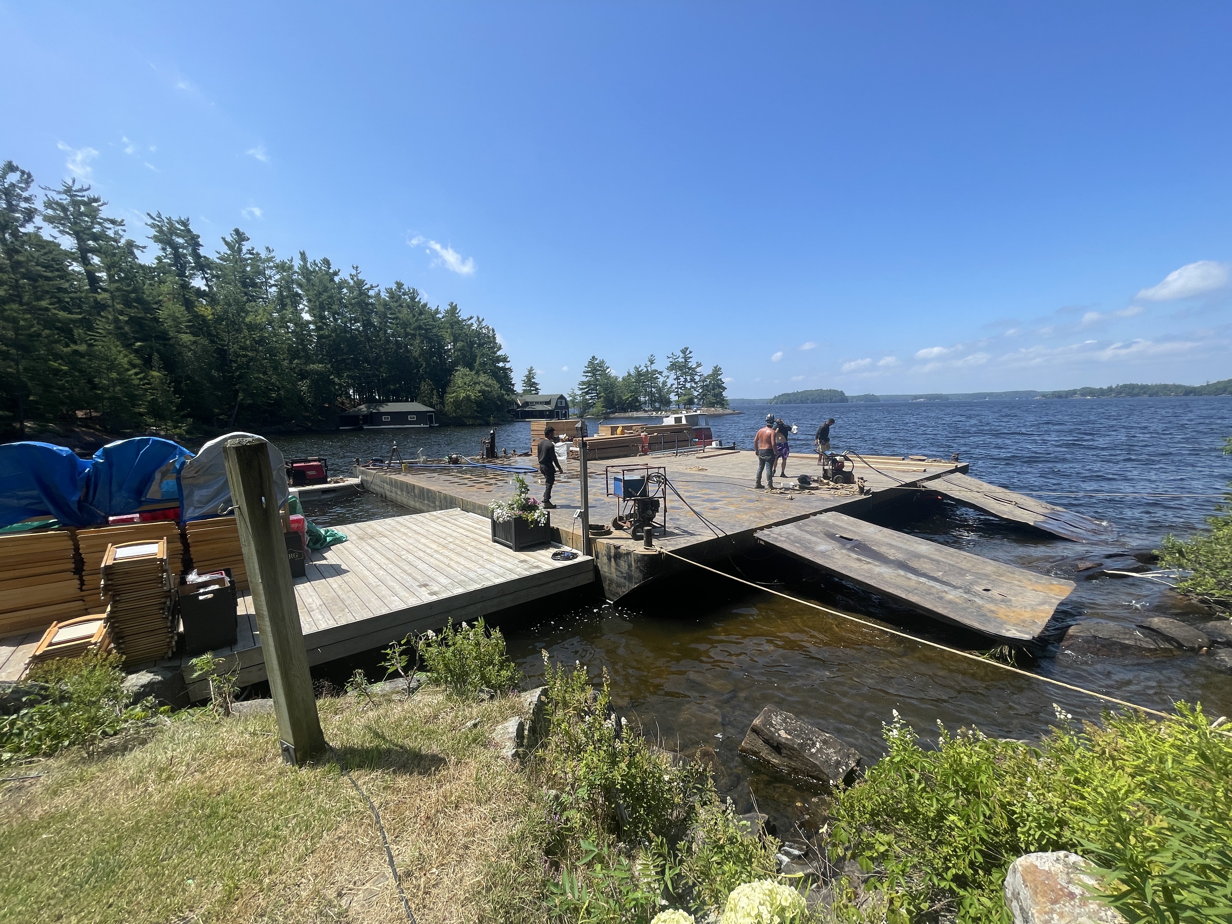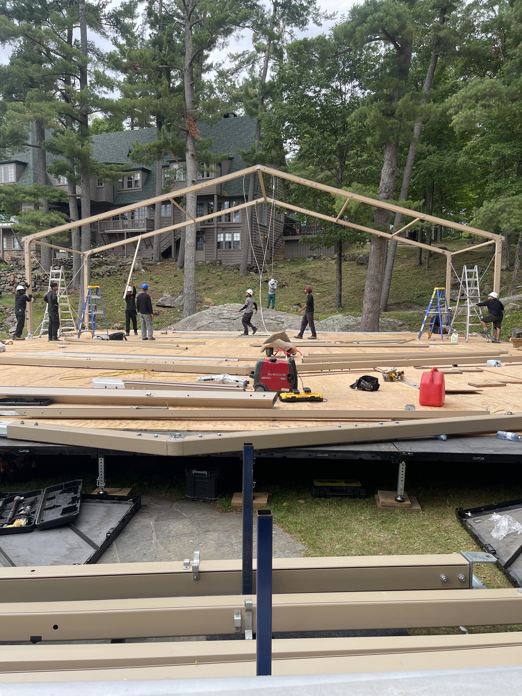 Waterfront weddings are beautiful—but a wedding built on the lake is extraordinary. Our barge wedding installations redefine what’s possible, creating floating venues that feel as polished and intentional as any luxury ballroom. With subfloors, clear-span structures, and custom accessories, we bring elevated elegance to the water, giving couples an unforgettable setting that quite literally rises above the ordinary.